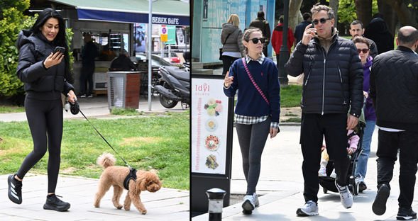 Edvina Sponza ve sevgilisi İbrahim Kutluay Bebek'te yürüyüş yaparken, Emra-Oğuz Çarmıklı'da birlikte form tuttu.