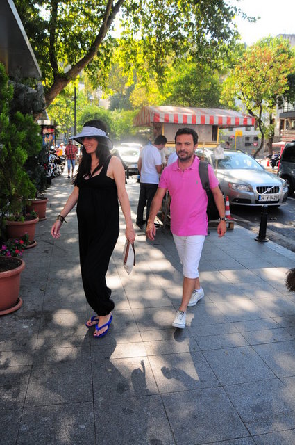 Ünlü çiftler pazar keyfi için İstanbul'un elit semtlerinden Bebek'i tercih ettiler.