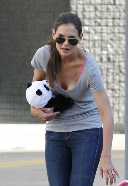 Kızı Suri'nin oyuncaklarını toplayan dünyaca ünlü oyuncu Katie Holmes, kızının pandasını kucağından indirmedi.