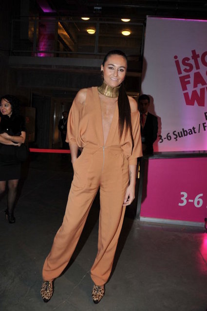 Farklı giyim tarzıyla tanınan Eda Taşpınar dikkatleri üzerine çekti.