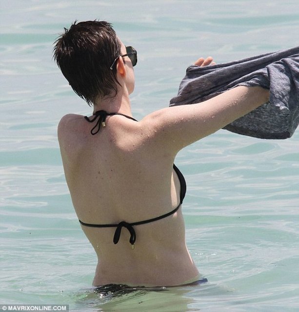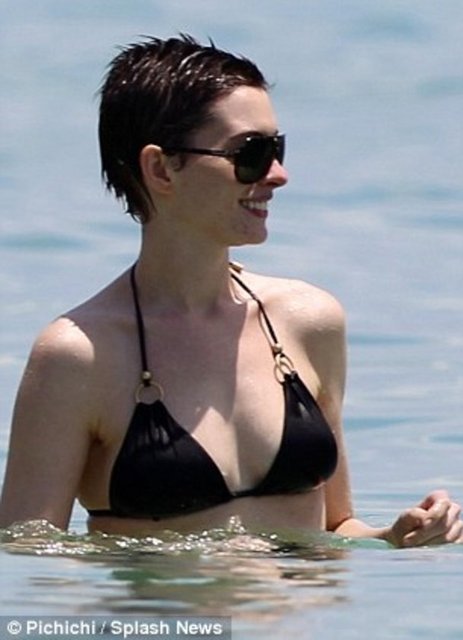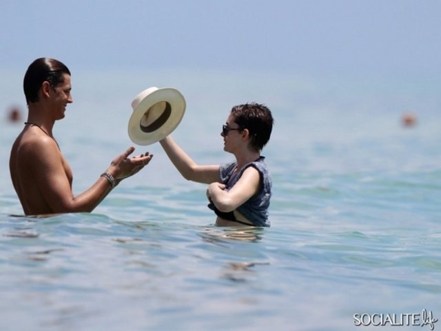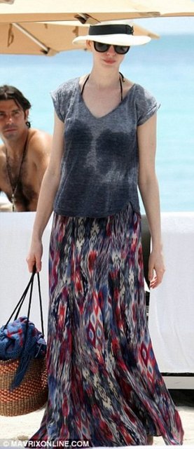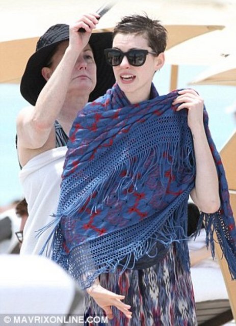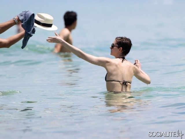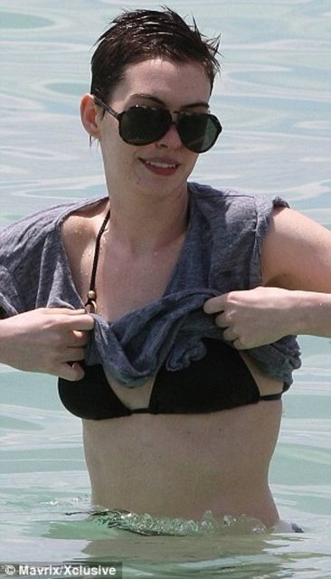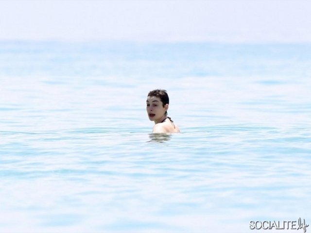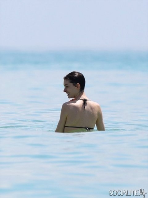 Dünyaca ünlü oyuncu Anne Hathaway Miami plajında stres attı.