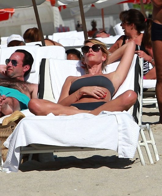 Alessia Marcuzzi, Miami sahillerinde sereserpe güneşlenirken objektiflere yansıdı.