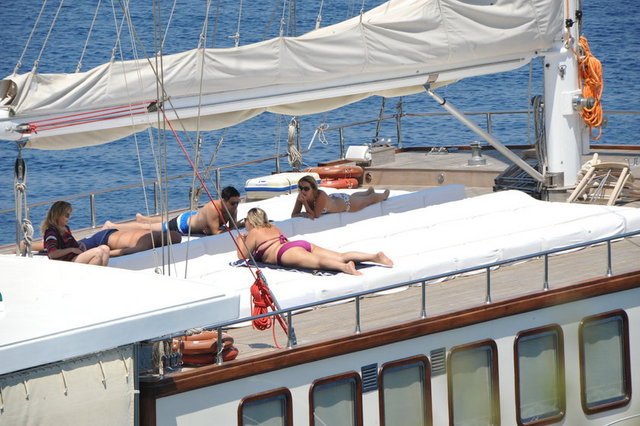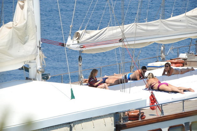 Cennet Koyu'nda demirli teknelerinde tatil yapan Neslihan-Yalçın Sabancı'nın önceki gün çok özel misafirleri vardı. Kızları Aysen Sabancı ile sevgilisi Mirkelam'ı teknede ağırlayan Sabancı Ailesi, keyifli bir gün geçirdi.