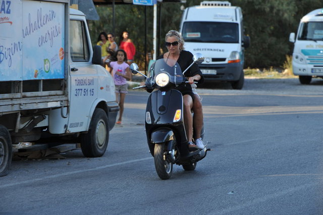 Motosiklet tutkusuyla bilinen Mine Kalpakçıoğlu, tatil yaptığı Bodrum'da da bu tutkusundan vazgeçmiyor.