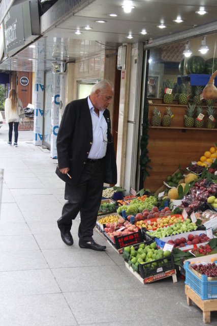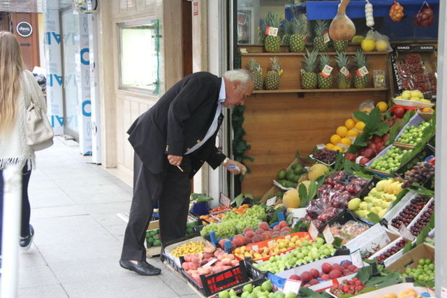 Ünlü işadamı Cefi Kamhi, Bebek'te bir manavda görüntülendi.