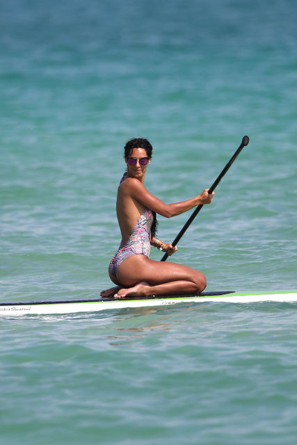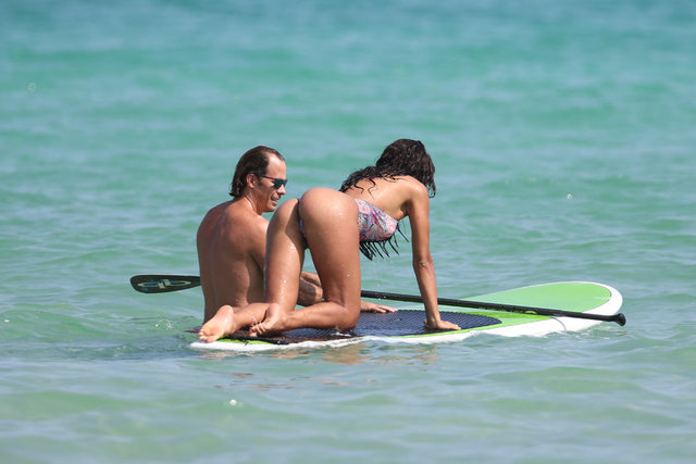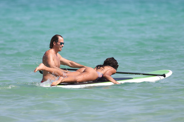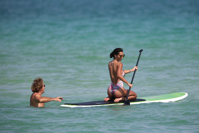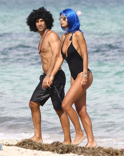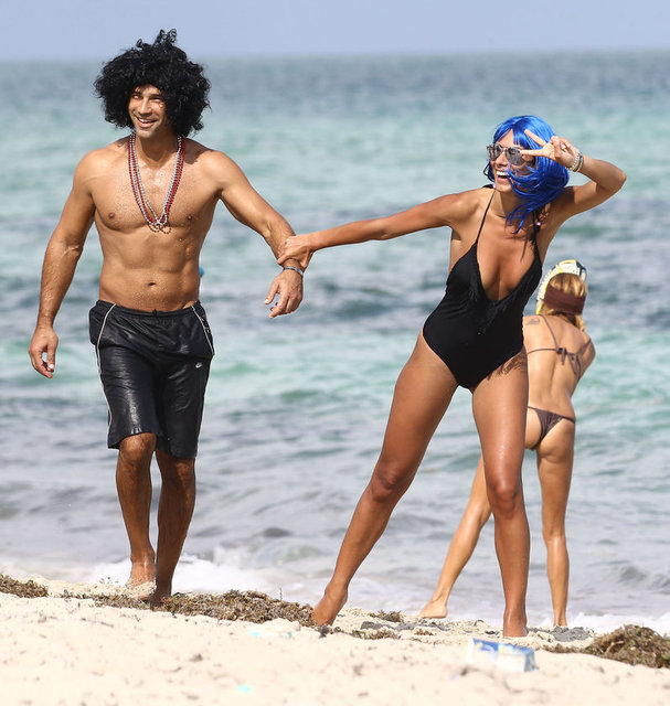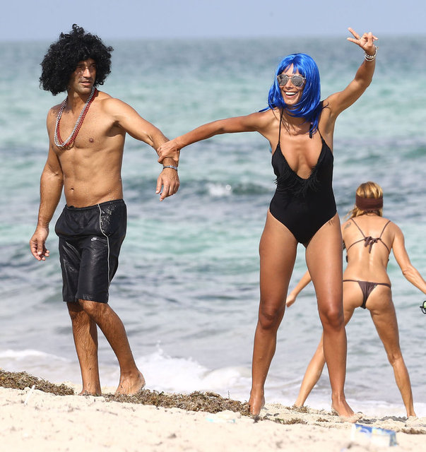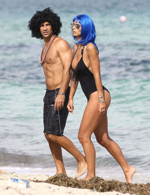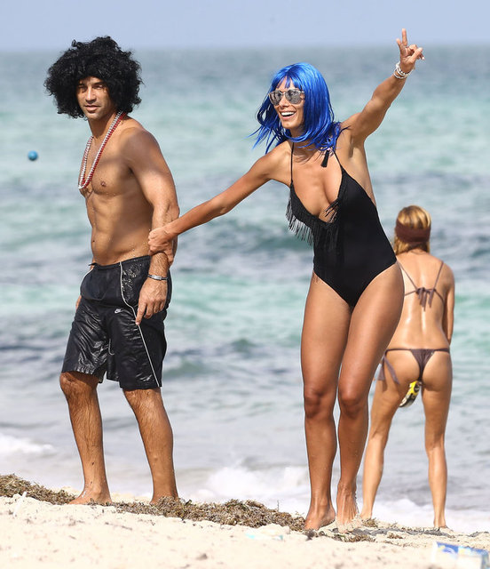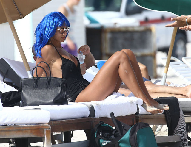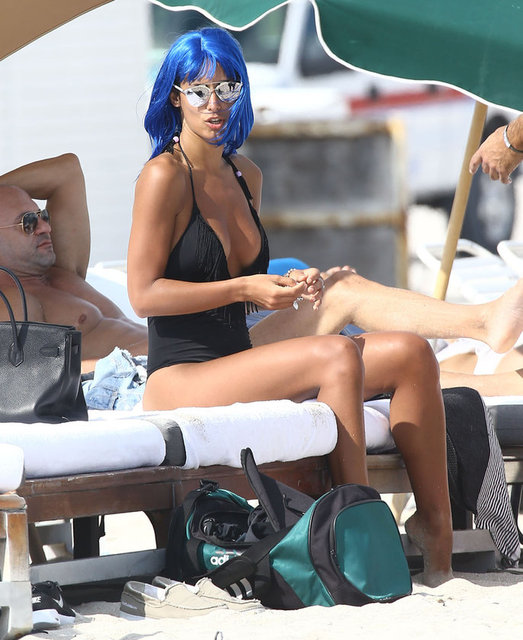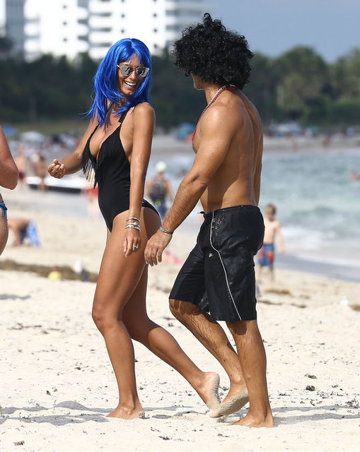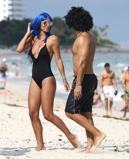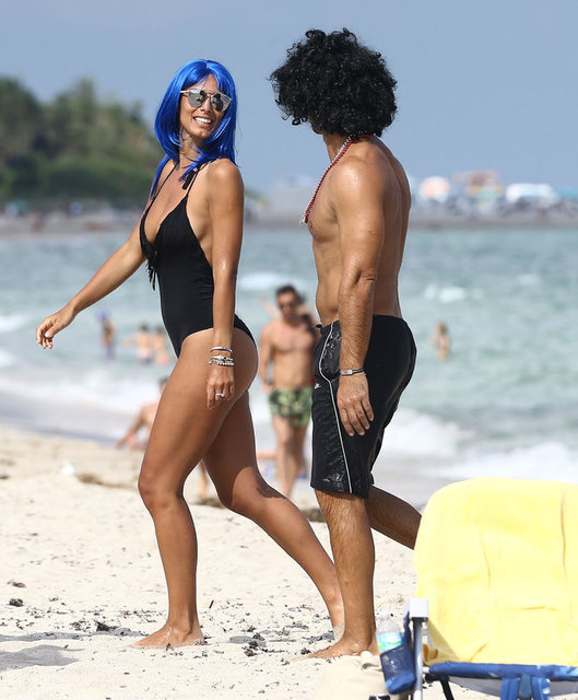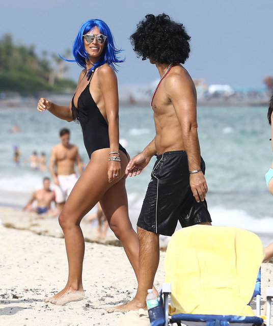 İtalyan model Raffaella Modugno, gittiği Miami tatilinde taktığı mavi peruğuyla herkesin ilgisini çekti.