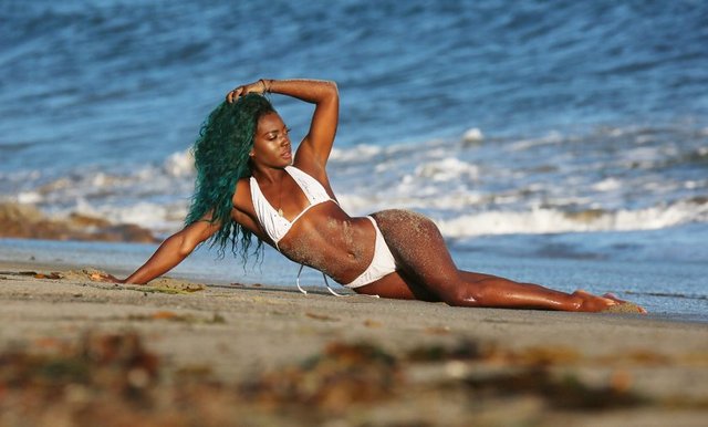 Ünlü fitness eğitmeni Cookieee Dough, Malibu'da katıldığı çekimlerde esmer vücuduyla adeta nefes kesti.