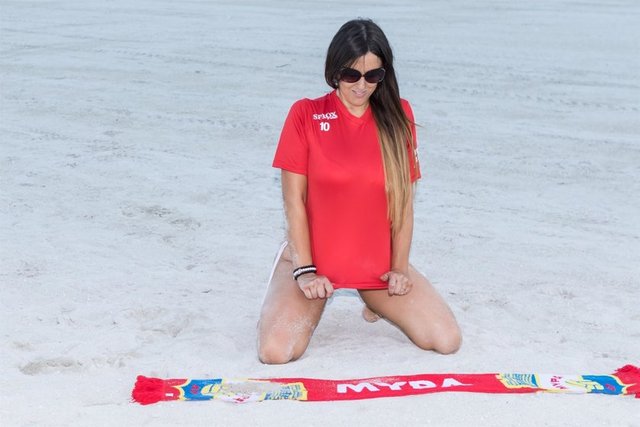 Dünyaca ünlü model Claudia Romani, Miami South Beach'te futbol oynadı. Dikkatli bakışlar arasında seksi figürler sergileyerek yürek hoplattı.