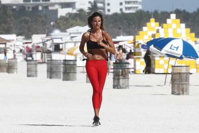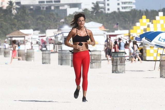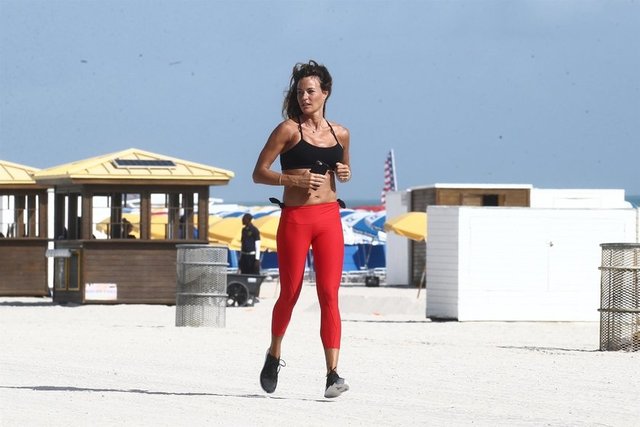Ünlü oyuncu Kelly Bensimon, Miami sahilinde koşu yaptı. Esmer güzel fit görüntüsüyle tüm dikkatleri üzerine çekti.