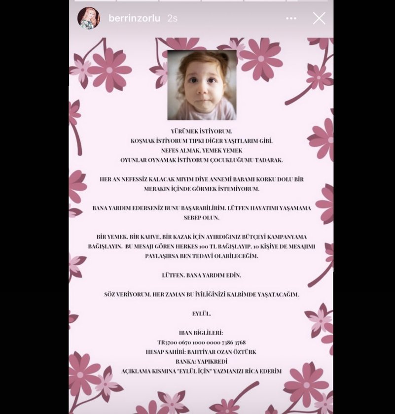 BERRİN ZORLU SOSYAL MEDYA HESABINDAN EYLÜL BEBEK İÇİN PAYLAŞIM YAPTI.