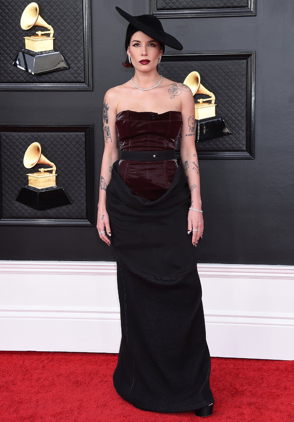 ŞARKICI HALSEY ŞAPKALI KOMBİNİYLE KIRMIZI HALI'DA YÜRÜDÜ.