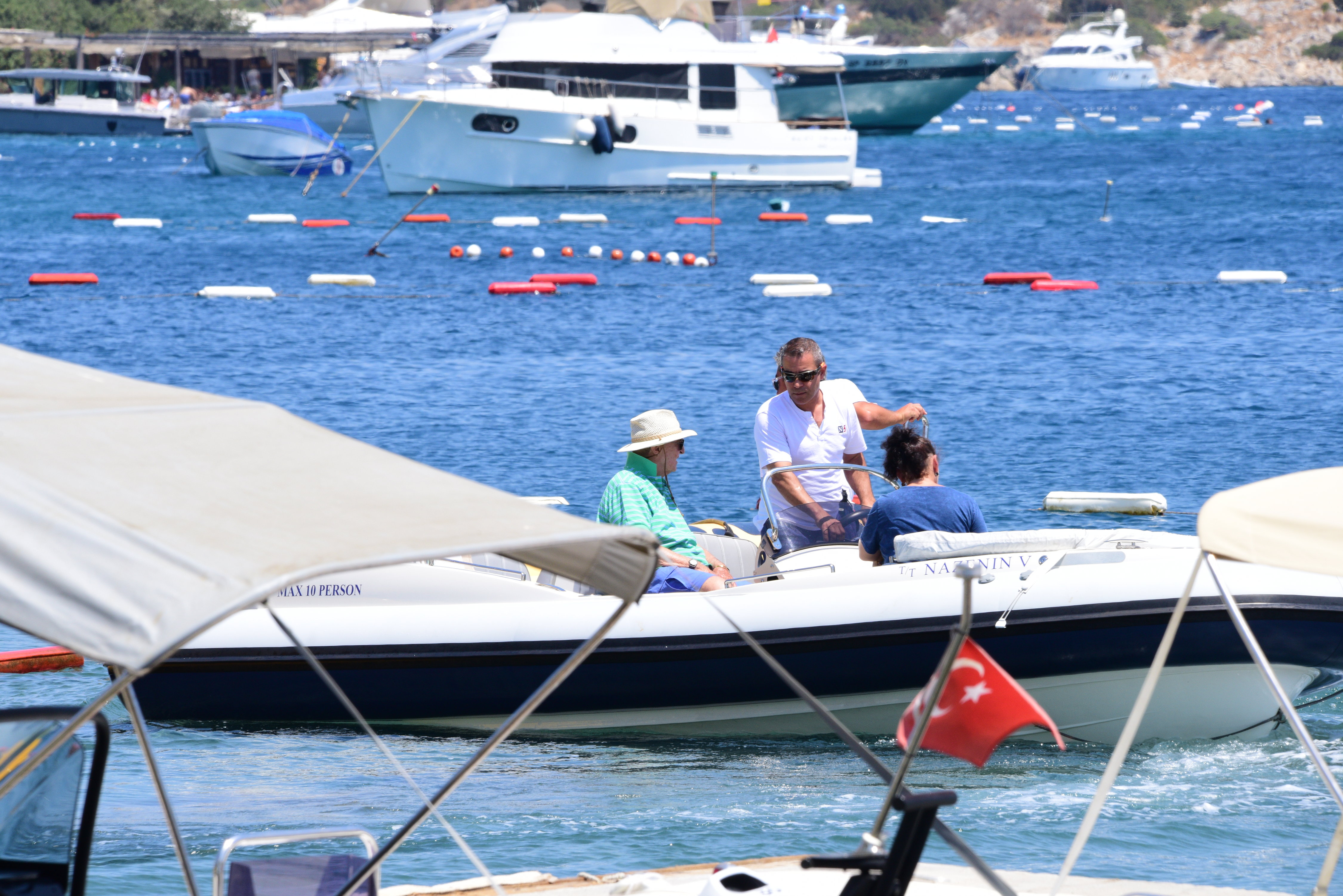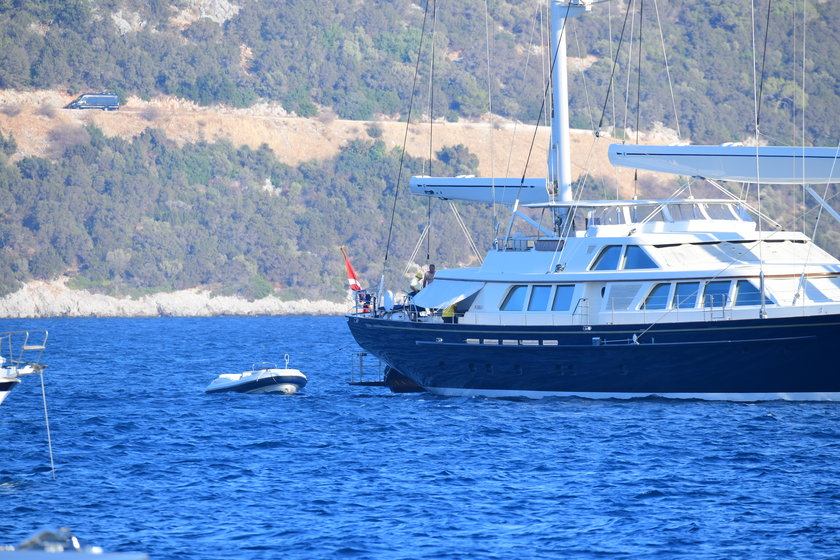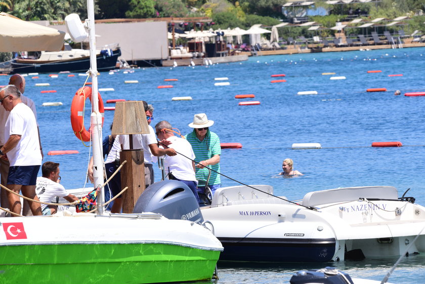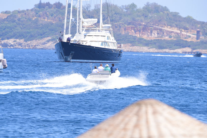 RAHMİ KOÇ DİVAN OTEL'İN İSKELESİNDEN BOTA BİNEREK DEMİRLİ TEKNESİNE GEÇTİ.