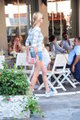 Bundan 3 yıl önce aile arasında sade bir törenle dünya evine giren ve mutlu evlilikten ikiz kızları olan Derin Mermerci-Cem Aydın çifti, Bebek’te objektiflere yansıdı. Derin Hanım, erken saatlerde geldiği Bebek’te ilk önce arkadaşlarıyla oturdu. Eşi Cem Aydın’ın gelmesiyle beraber biraz daha dostlarıyla oturan çift, daha sonra baş başa kaldı. Saatler boyunca sohbet