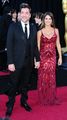L'Wren Scott imzalı kırmızı elbisesi içindeki Penelope Cruz'a eşlik eden eşi Javier Bardem Gucci takım elbise hakkında espri yapıyor: “Bu takım son derece rahat ve 'cool'. Aynı benim gibi...”