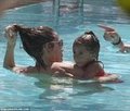 Kendinden yaşça küçük sevgilisi Casper Smart'ın da yer aldığı tatilde oldukça mutlu olduğu görülen Jennifer Lopez, sarı bikinisiyle dikkat çekti. Otelin yüzme havuzunda eğlenceli dakikalar geçiren Emme, annesiyle birlikte havuzda yüzdü. Lopez'in ikizleriyle yakından ilgilenen Smart, sevgilisiyle de gölgede sohbet etti.