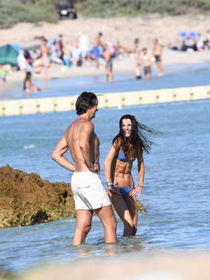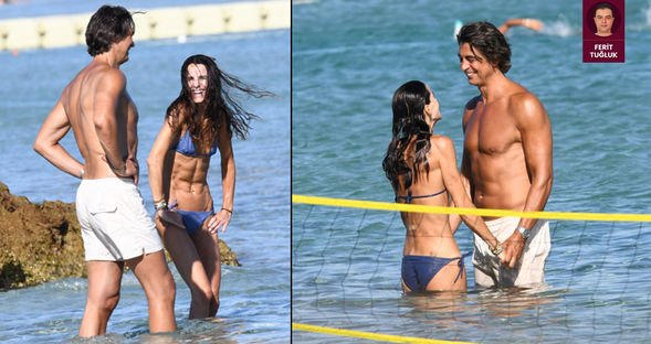 İbrahim Kutluay ve sevgilisi Edvina Sponza önceki gün Çeşme'de denize girerken objektiflere yansıdılar.
