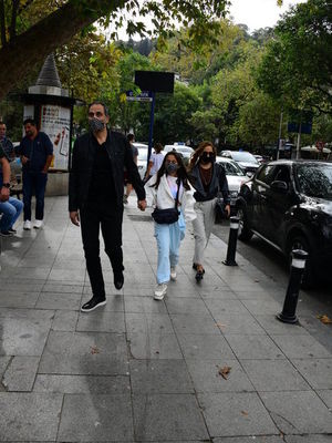 Hande-Mehmet Gamgam çifti, kızlarıyla birlikte Bebek'te yürüyüş yaptılar.