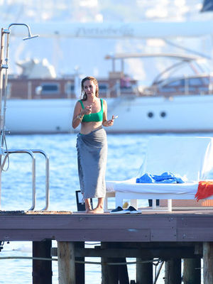 Bodrum'da tatil yapan Hande-Mehmet Gamgam çifti denize girerek serinledi.