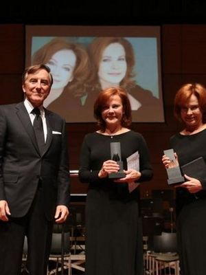 İKSV Yönetim Kurulu Başkanı Bülent Eczacıbaşı, Mehmet Birkiye'ye 27. İstanbul Tiyatro Festivali Onur Ödülü'nü düzenlenen gecede verdi.
