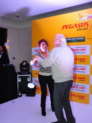 Pegasus Golf Challenge Turnuvası'nın Ödül Töreni'nde müziğin ritmine kendilerini kaptıran Demirören ve Kamışlı, harika bir dans gösterisi sergiledi.