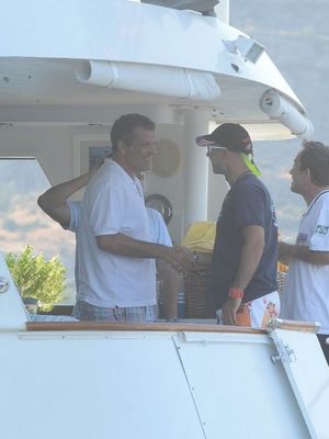 Bodrum'da tatillerine devam eden işadamlarından Uğur Işık ve Saruhan Tan yakın arkadaşları Nur Taşkent'i teknesinde ziyaret ettiler.