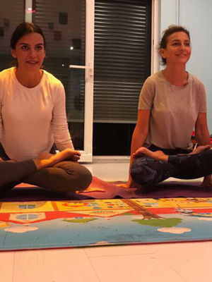 Cemiyet hayatının ünlü hanımlarından Neslişah Alkoçlar Düzyatan ve yakın arkadaşı Beyza Uyanoğlu, yoga dersleri almaya başladı.