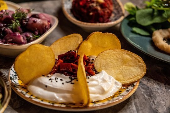 Lezzetleri olduğu kadar sunumları ile de iddialı olan mönüde Çerkez tavuğu, pancarlı kısır, mangolu levrek ceviche, humus, zeytinyağlı yer elması, özel soslu atom patates, sarı mercimek fava gibi farklı beğenilere hitap eden lezzetler bulunurken Arnavut ciğeri, falafel ve incirli ve keçi peynirli börek ise ara sıcaklar bölümünde sunuluyor. Ana yemeklerde ızgara levrek, lokum bonfile ya da tavuk şiş yer alıyor. Tatlı olarak ise balkabağı tatlısı mutlaka denenmeli. Deneyimli mutfak ekibi menüde yerel malzeme kullanımına önem veriyor.