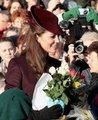 Cambridge Düşesi Catherine, İngiltere'deki St. Mary Magdalene Kilisesi'nde halkı selamladı. Bordo bir ceket ve aynı renkte şık bir şapka takan Kate Middleton, moda yazarları tarafından giyim tarzıyla büyük beğeni topluyor. Prens William'ın da hazır bulunduğu törende, Prens Charles ve eşi Camilia'da yer aldı. Noel için özellikle koyu kırmızı rengi tercih eden Middleton, İngiliz halkı tarafından büyük bir çoşkuyla karşılandı.