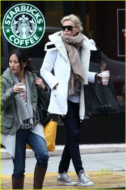 Dünyaca ünlü seksi oyuncu Charlize Theron, Manhattan'da fanlarını selamlayarak onlarla fotoğraf çektirdi.