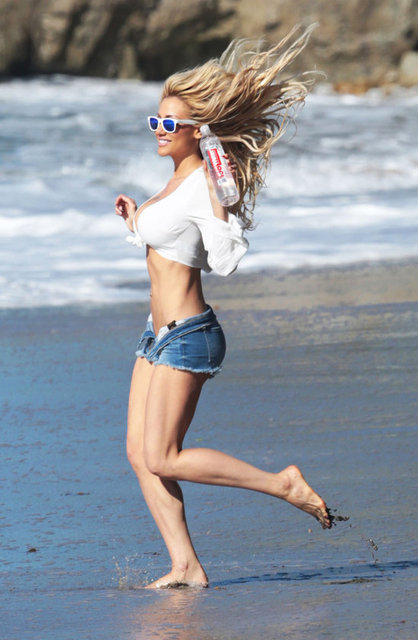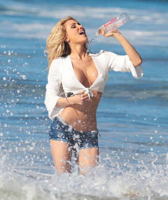 Dünyaca ünlü seksi model Dalia Elliott, Malibu'da bir su markasının çekimleri için objektiflere birbirinden cesur pozlar verdi.