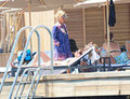 İpekyol Yönetim Kurulu Başkanı Yalçın Ayaydın, eşi Tunay Ayaydın ile kızı İpek Ayaydın Abdik, Bodrum Cennet Koyu’ndaki Mandarin Otel’de tatil yapıyor. Ailece otelin iskelesine inen Ayaydınlar, güneşlenmek için şezlong seçerken objektiflere yansıdı.