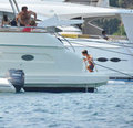 Türkiye Futbol Federasyonu Başkanı Yıldırım Demirören eşi Revna Demirören, çocukları Erdoğan ve Cemal ile birlikte önceki gün Bodrum Türkbükü'nde objektiflere yansıdı. Turkcell Süper Lig'in başlamasına haftalar kala, spor kamuoyunda günlerdir tartışılan Beşiktaş ve Fenerbahçe Spor Kulüpleri'nin şike soruşturması kapsamında UEFA nezninde ceza almaları ve yabancı futbolcu kontenjanının 6+0 olarak belirlenmesinden dolayı eleştirilere maruz kalan Demirören, biraz olsun stres atmak için soluğu Bodrum'da aldı. Hafta sonları geldiği Bodrum'da yorucu iş temposuna bir süre ara vererek soluklanan Yıldırım Bey, oğulları Cemal ve Erdoğan ile birlikte yüzerek stres attı. Eşi Revna Hanım teknede oturduğu sırada, oğullarıyla denizde şakalaşan Yıldırım Bey, kış sezonunun yorgunluğunu bu vesileyle atmış oldu. Yazı Bodrum'da geçirmeyi planlayan Demirören Ailesi, hafta sonları baba Yıldırım Demirören'in de aralarına katılmasıyla tatil sezonunu kapatacak.